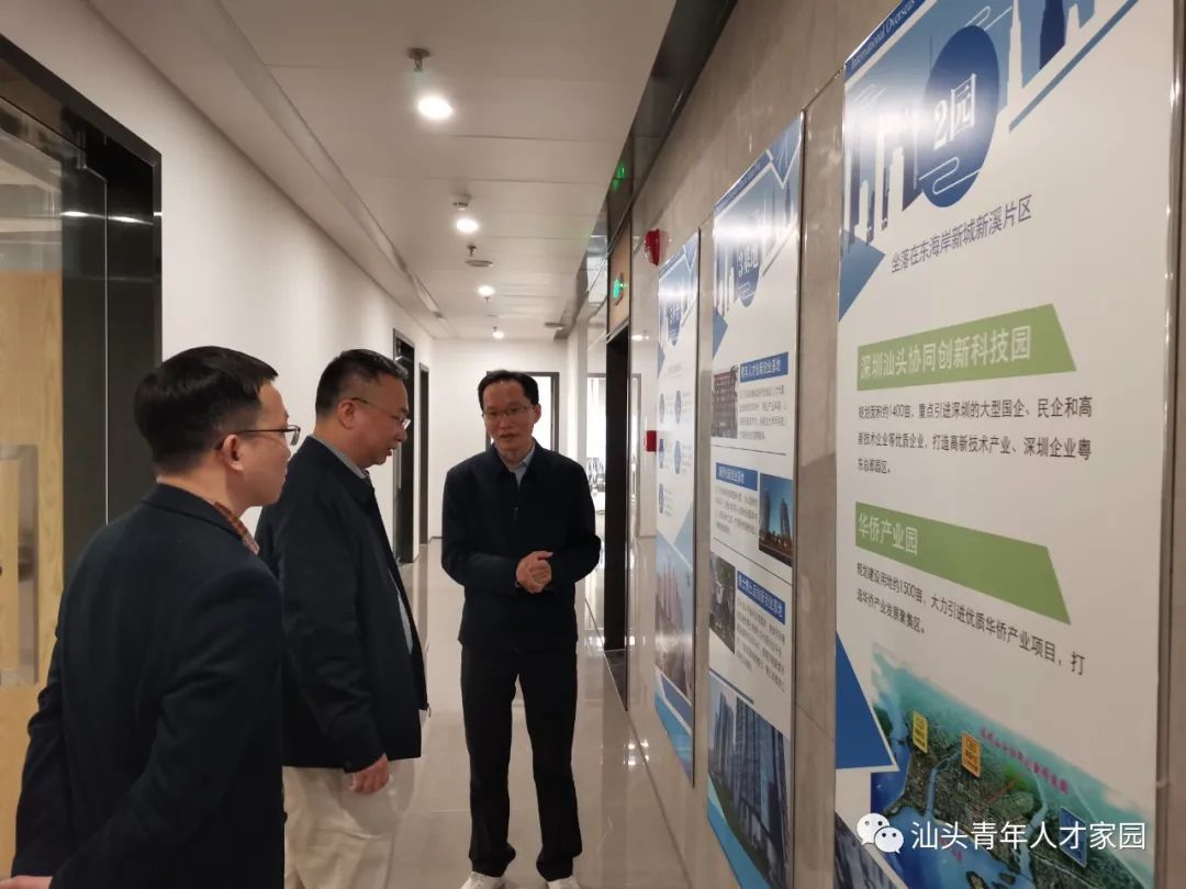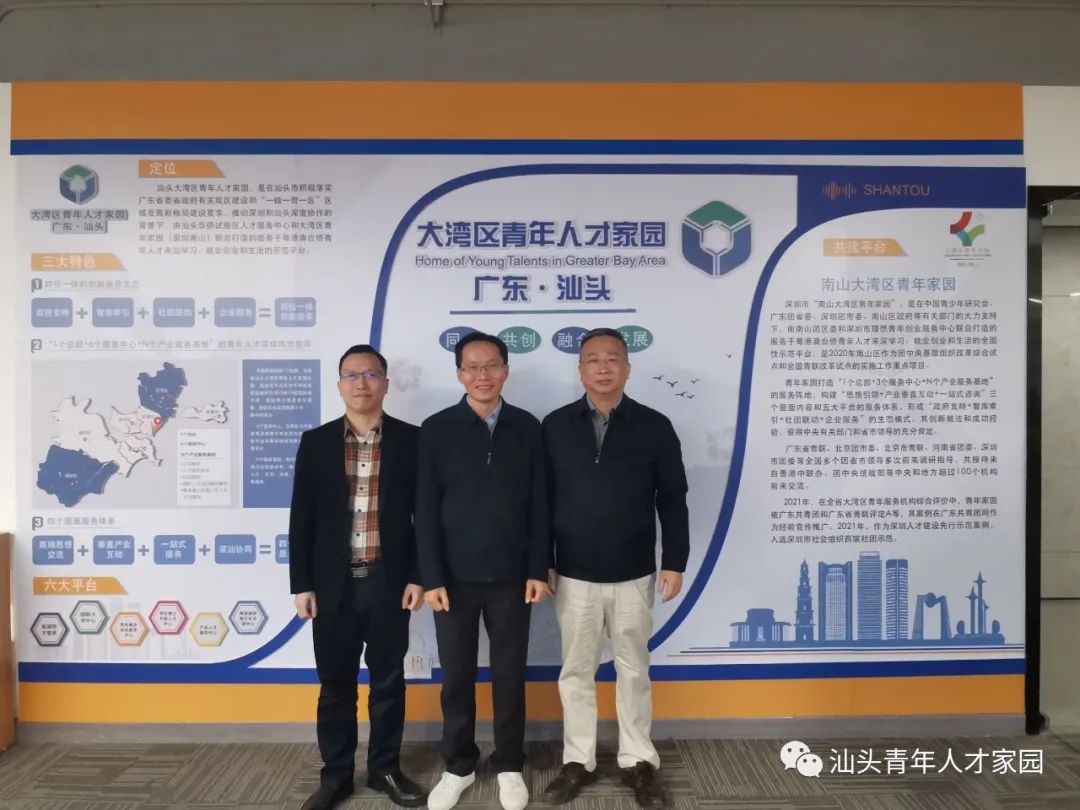 陈馥忠局长表示,汕头大湾区青年人才家园是深汕青年协作的新纽带,也是与高端人才交流的一个好窗口,希望能够与南山大湾区青年家园联动,成为汕头招商引资、招才引智的重要平台。随后,陈馥忠局长与陈咏华副会长就双方合作展开探讨。参加这次调研的还有汕头市投促局副局长陆建明等。